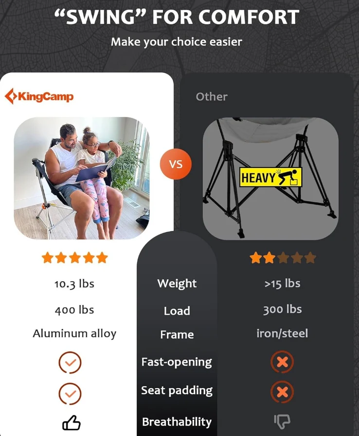 Зөөврийн кемпийн аяллыг тохируулах боломжтой, та чөлөөтэй сууж эсвэл суух боломжтой. Оосорыг тохируулна уу, таны төгс арын өнцгийг олох боломжтой. Савлуурын зуслангийн сандал нь урт олс, модгүйгээр зэрлэг байгальд суух боломжийг танд олгоно.