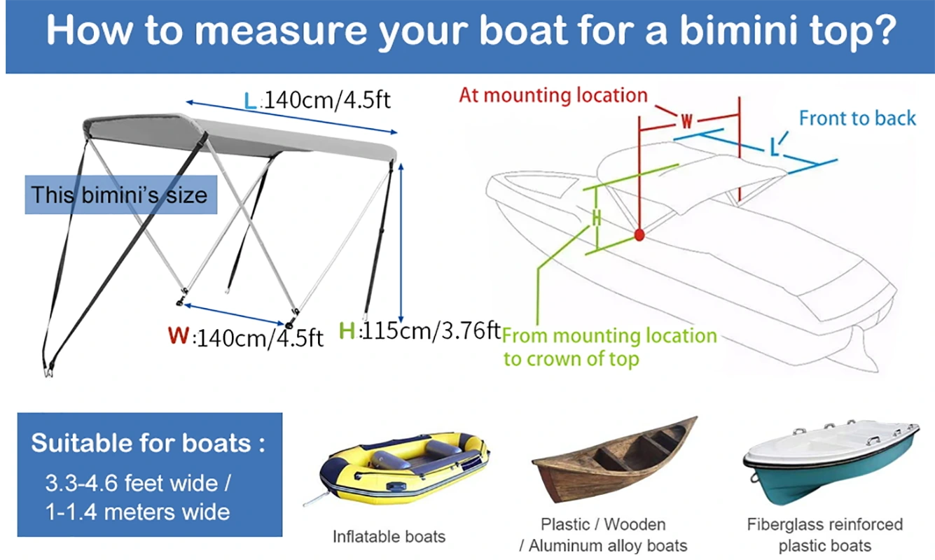 210D Оксфорд даавуугаар хийсэн халхавч, чийг, бороо орохгүй. 210D далайн чанартай материал Бимини дээд хэсэг нь нарны халууныг тэсвэрлэх чадвартай, далайд зориулсан олон үйлдэлт нарны халхавч бөгөөд таныг болон таны гэр бүлийг далайд аюулгүй, тав тухтай, чөлөөтэй өнгөрүүлэх боломжийг олгодог.