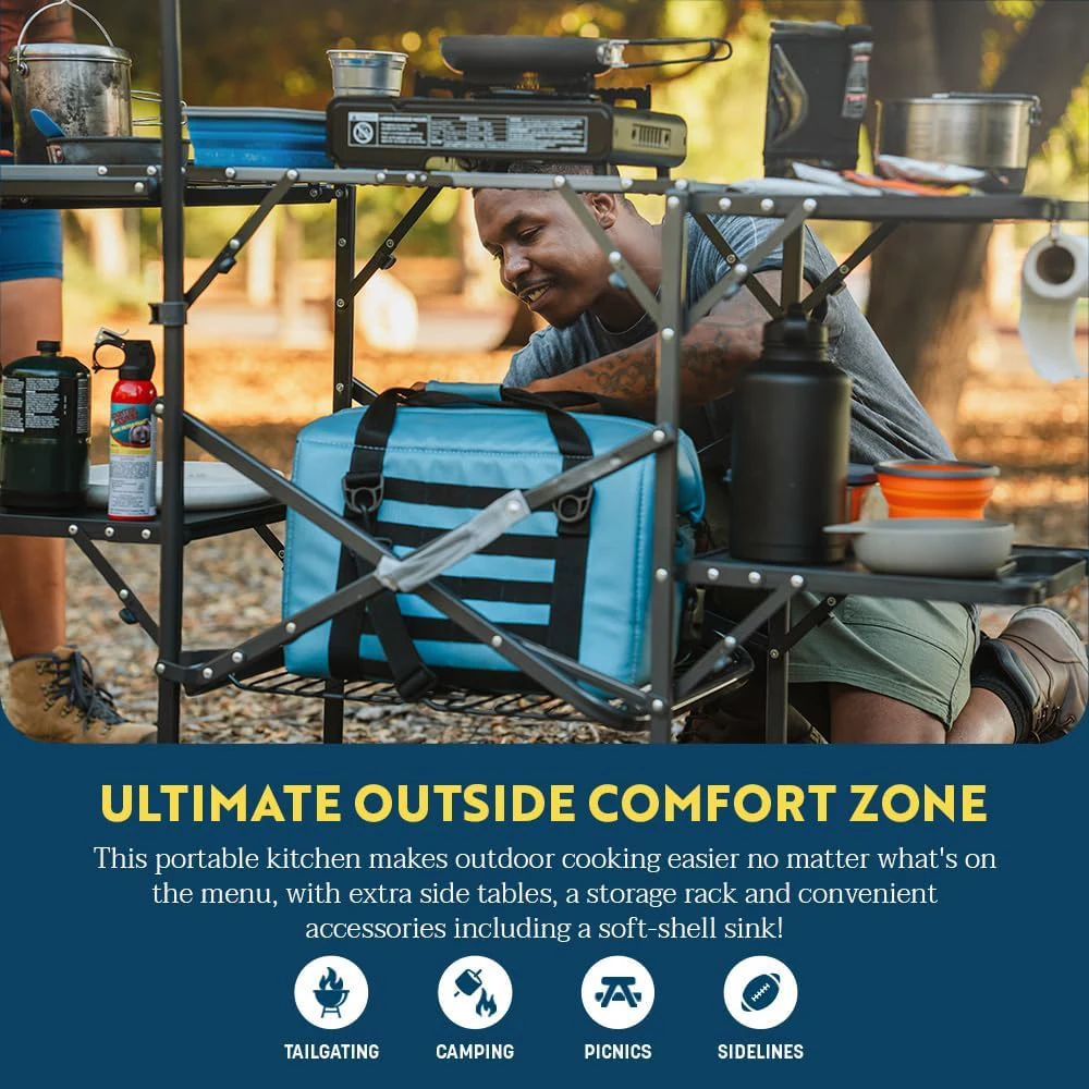 Зөөврийн атлагдсан хөнгөн цагаан кемпийн ширээ, epic-ийг GCI OILL-ээс MAPION CAPITE-тэй болгоорой. Энэхүү зөөврийн гал тогоо нь онцлог шинж чанартай (зөөлөн бүрхүүлийг оруулаад) багтдаг (зөөлөн бүрхүүлийн угаалтуурыг оруулаарай!)