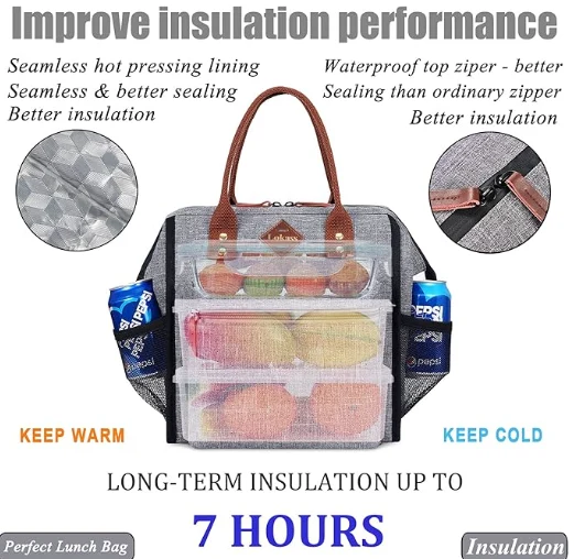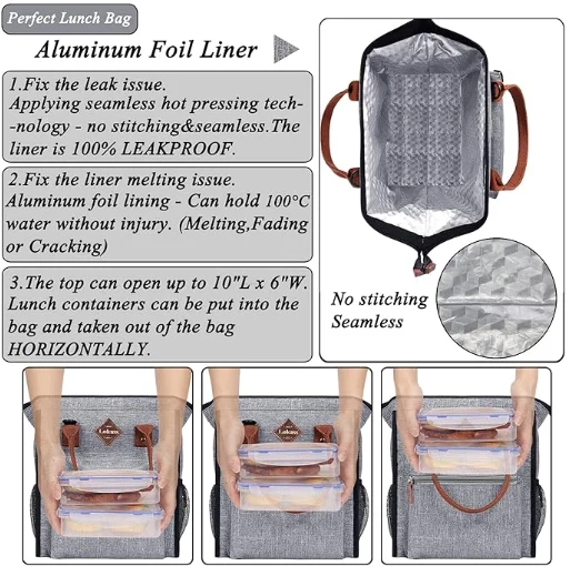 Гадуур хөнгөн цагаан тугалган цаасны хөргөлтийн уут доторлогоо нь 100% -ийн гоожсон бөгөөд цэвэрлэгээ, амархан хайлж, амархан хайлж, амархан хайлж чадахгүй. Nylon Bust нь ус тэсвэртэй бөгөөд дээд цахилгаан товч нь усгүйдэл юм. Усан ус нэвтэрдэггүй, дулаалгаагүй, энэ өдрийн үдийн цайны уутыг маш сайн хийдэг.