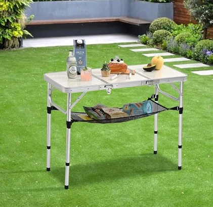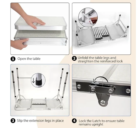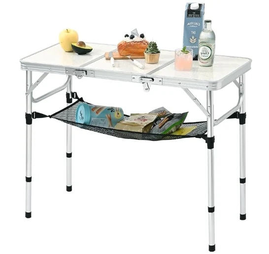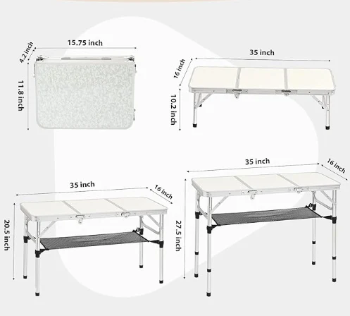 Зөөврийн хөнгөн цагаан зуслангийн ширээ, хөнгөн, хөнгөн, зөөврийн ширээ: Энэ нь тээврийн хэрэгслийг хялбархан тээвэрлэхэд ирдэг. Энэ нь таны машинд тохиромжтой хадгалах зориулалттай компактын товчийг дарж нугалж болно. Жинтэй 7л жинтэй, энэ зөөврийн ширээ нь 80 фунт хүртэл барьж болно