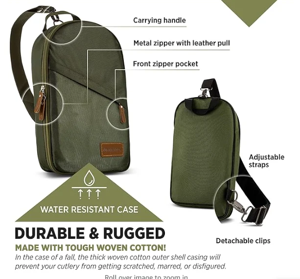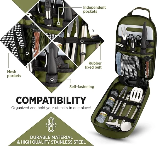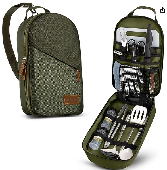 Гар зөөврийн гадаа кемпийн багаж хэрэгсэл цүнх зөөврийн багаж хэрэгсэл. олон тооны тасалгаанууд, тиймээс хавтгай хангамж нь бат бөх байдаг бөгөөд тээврийн явцад түгжих үед түгжихгүй. Уналтын тохиолдолд зузаан нэхмэл хөвөн даавууны гаднах бүрхүүл нь таны зүсэлт, эвдрэл, Нугалав, цүнх нь аяллын ачаа тээш, их биед тав тухтай, их биед тавьдаг. Аяга таваг угаагч аюулгүй бөгөөд амархан цэвэрлэж, угаагч нь ээлтэй. Гялалзсан дизайнтай инженерээр хийсэн, энэ нь стандарт хадгалах зайд амархан хадгалдаг